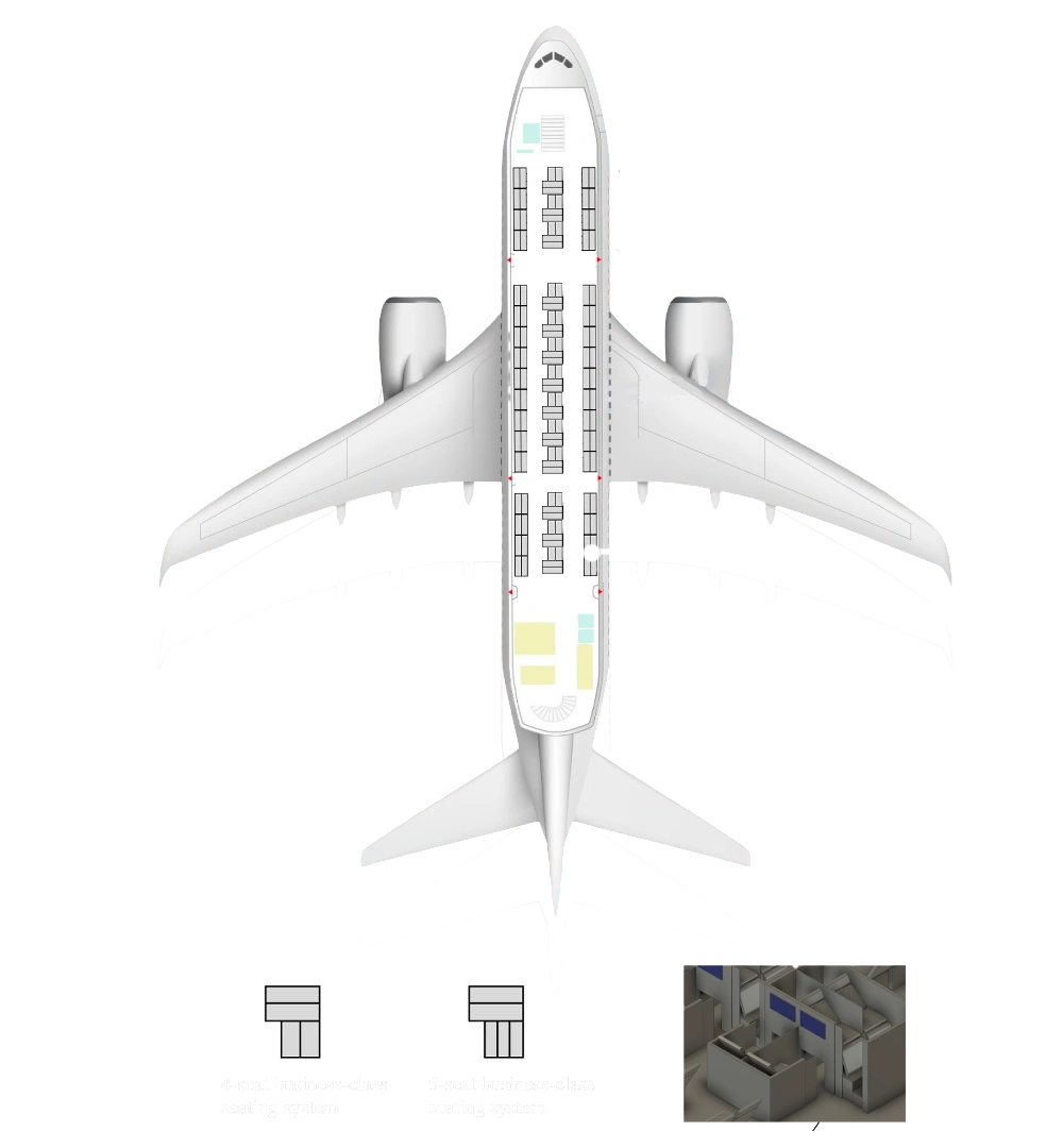 Korean Air currently offers 94 Business-Class Seats on the A380's Upper Deck. Utilizing their patented 4-seat seating system, the A380 business class configuration can be expanded to accommodate 136 seats. Furtuermore, with the 5-seat seating system, the maximum capacity can reach up to 170, as indicated in seat map.